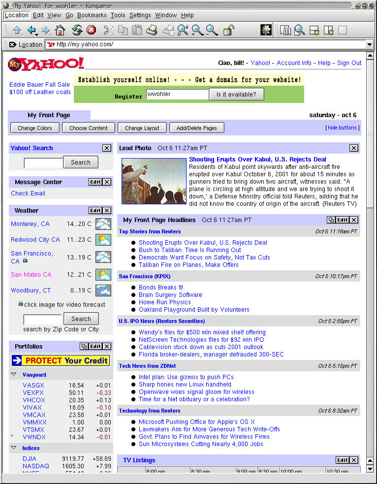 my.yahoo.com's welcome screen.