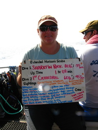 We went diving at Lanai Thursday morning with Extended Horizons. Loren drove, Victoria dove. Maren led the second team. Angie joined us today. The water was a bit too rough for some of the divers, including Maren, one of the divemasters, who got sick on the way out to the dive site. We found the refuge of the calmer waters to the west of the island first before returning to the First Cathedral. Beautiful fish. Nice topography. Saw whales and dolphins too.