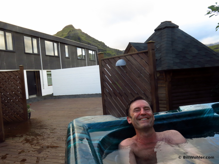 Our first hot tub, and this one at the Hótel Skógar was really, really hot!